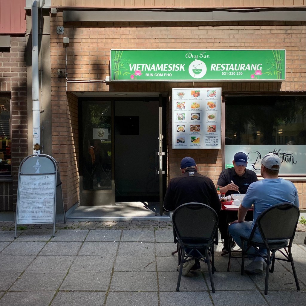 It’s a sunny day, and that’s good. But It’s also lunch rush, and everyone in Gothenburg craves Phô. Getting an outside table at Duy Tan isn’t happening, but the bowls of broth with noodles, meat, herbs, and vegetables fill Kvilletorget with a fragrance so seductive we’re compelled to try our luck inside.