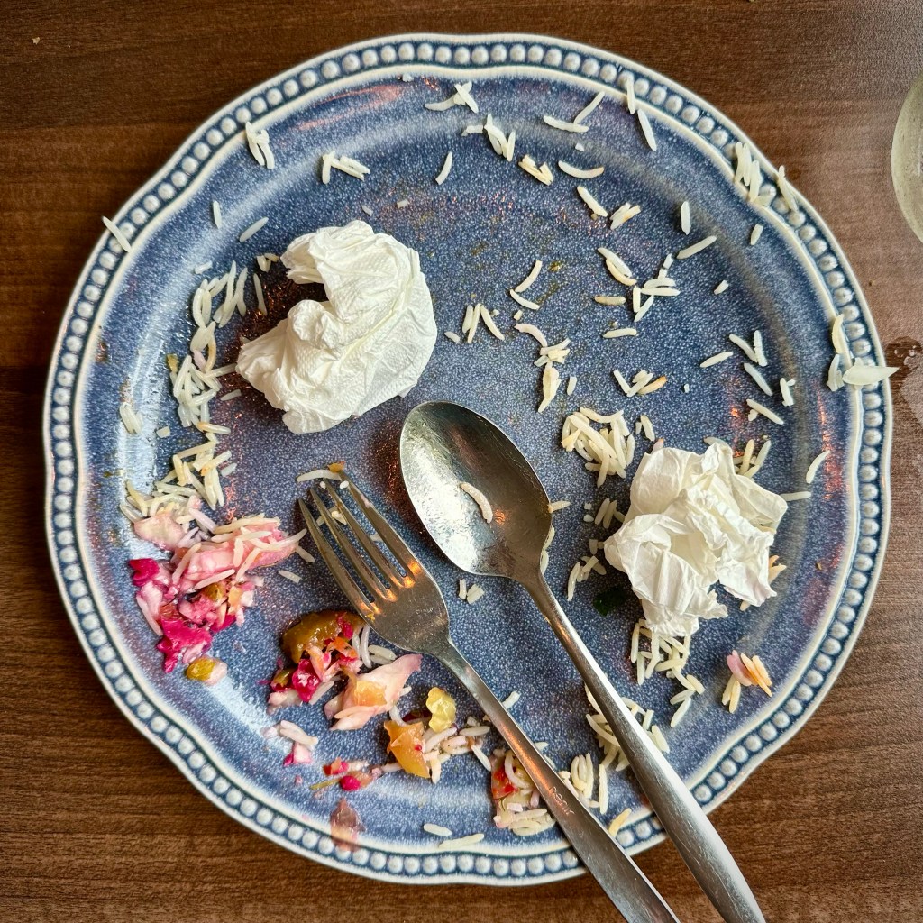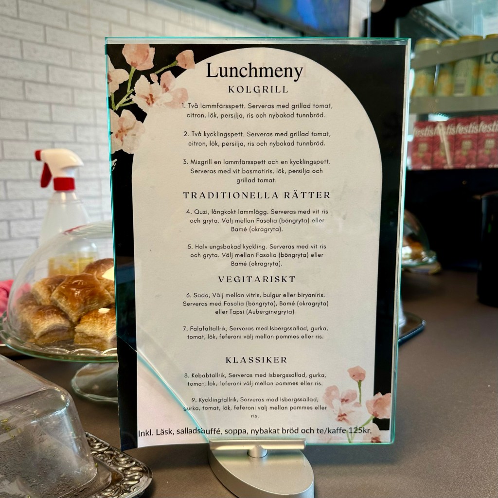 We stumbled upon it during a cold, rainy November night. But with no time for a meal, we promised ourselves we’d return. So we did. And the moment we stepped in, we entered another world. Gone was the awesome ugliness of Lundby Hamngata. Instead, we were greeted by a warm, ambient glow, rustic wooden beams crisscrossing the ceilings, complemented by ornate lanterns casting intricate patterns of light and shadow on the walls. Authentic Kurdish rugs, with their intricate designs and deep red and gold hues, thoughtfully laid out on the floor and as wall hangings, adding a touch of traditional elegance.