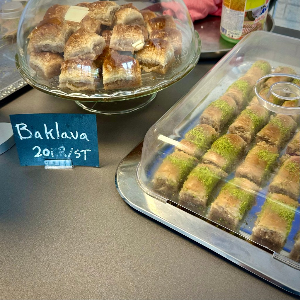 We shared our meal alongside a diverse group of patrons: a family, a cab driver, two construction workers discussing machines, and a table of white collars discussing machine learning. Perhaps one of them wrote the review that pinpointed Agir’s elegant simplicity: “It’s like coming home to grandma’s where the food tastes genuine without all the modern sauces and other fuss.” We concur, apart from the author’s distaste for “modern sauces,” whatever that means. In fact, the absence of a decent sauce to complement the dishes was the only downside of the meal. The options available were a near-empty bottle of Sriracha and some ketchup. However, the baklava, modestly priced at 20 SEK a piece, more than compensated for that.